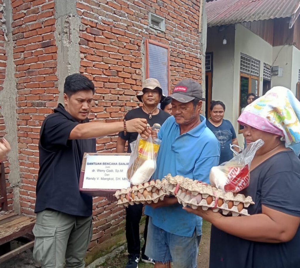 Bersama Tim dan didampingi istri tercinta, Resty Ava Somba, S.Sos, MH, mengunjungi Kelurahan Gogagoman dan Kelurahan Mogolaing, tempat di mana banjir menggenangi rumah-rumah warga.