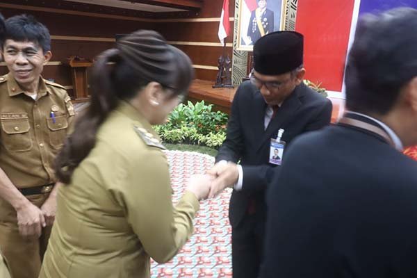 Wakil Walikota Tomohon menyampaikan selamat kepada Bapak Joko Supratikto yang baru dikukuhkan sebagai Kepala Perwakilan Bank Indonesia Provinsi Sulawesi Utara dan selamat memasuki purna tugas kepada Bapak Andry Prasmuko.