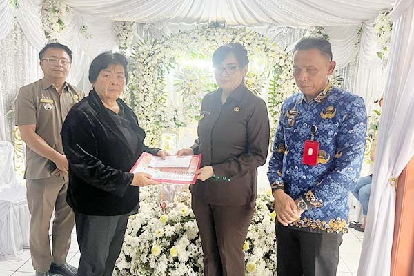 Pada kesempatan tersebut, Wakil Walikota Tomohon juga menyerahkan secara langsung santunan duka dari Pemerintah Kota Tomohon, akta kematian almarhum, serta Kartu Keluarga (KK) baru kepada pihak keluarga sebagai bentuk pelayanan dan kepedulian pemerintah terhadap warga yang mengalami kedukaan.