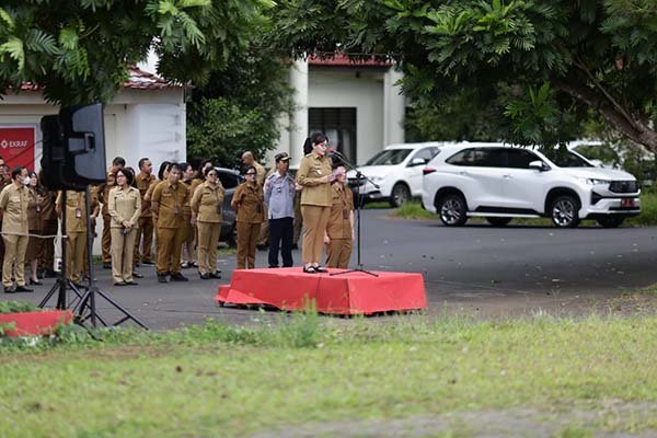 Tomohon,Sulutnews.com – Wakil Walikota Tomohon, Sendy G. A. Rumajar, S.E., M.I.Kom., memimpin apel kerja jajaran Pemerintah Kota Tomohon yang dilaksanakan di Lapangan Kantor Wali Kota Tomohon, Senin (1/9/2025).