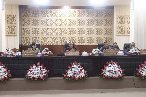 Rapat Paripurna dipimpin oleh Ketua DPRD Kota Tomohon Ferdinand Mono Turang, S.Sos. didampingi Wakil Ketua DPRD Kota Tomohon Donald Pondaag dan Jefri Polii, S.I.K.
