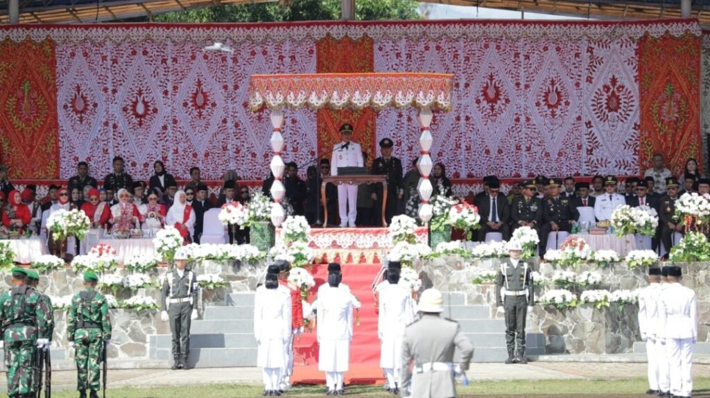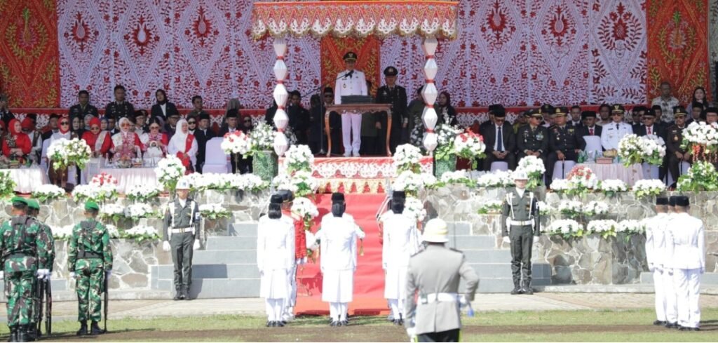 KOTAMOBAGU – Wali Kota Kotamobagu, dr. Weny Gaib, Sp.M., memimpin upacara peringatan Hari Ulang Tahun (HUT) ke-80 Kemerdekaan Republik Indonesia yang digelar di Alun-alun Boki Hontinimbang, Minggu (17/08/2025).