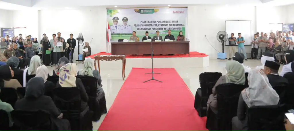 Pelantikan tersebut berdasarkan Keputusan Wali Kota Kotamobagu Nomor 5/BKPP/SK.WK/11/2026 tentang Pemberhentian dan Pengangkatan Pejabat Administrator, Pengawas dan Fungsional di Lingkungan Pemerintah Kota Kotamobagu.