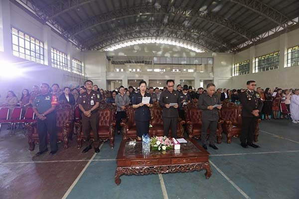 Dihadiri oleh Ketua DPRD Kota Tomohon Ferdinand Mono Turang. S.Sos, Sekretaris Daerah Kota Tomohon Edwin Roring, SE, ME Bersama Ketua DWP Kota Tomohon Prisilia Roring – Rawung, Kapolres Tomohon AKBP Nur Kholis, S.IK, Kajari Tomohon Alfonsius Loe Mau, SH, MH, Mewakili DANDIM 1302 / Minahasa Kapten Armed Zadrak Sonlay Danramil Tomohon, Pimpinan Instansi Vertikal dan Pimpinan Perbankan, Jajaran Pemerintah Kota Tomohon,Tokoh Tokoh Agama dan Tokoh-tokoh Masyarakat.(*/Merson)