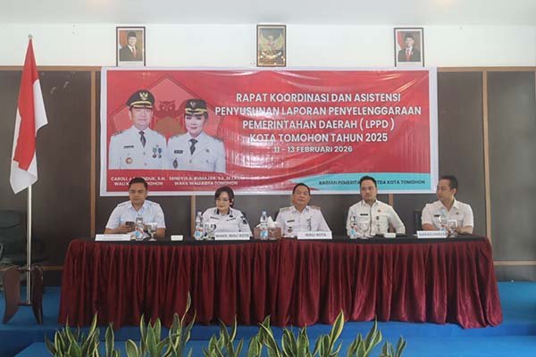 Tomohon,Sulutnews.com – Walikota Tomohon Caroll J. A. Senduk, S.H. membuka Rapat Koordinasi dan Asistensi Penyusunan Laporan Penyelenggaraan Pemerintahan Daerah (LPPD) Kota Tomohon Tahun 2025, bertempat di Hotel Grand Master Tomohon, Rabu, 11/02/2026.