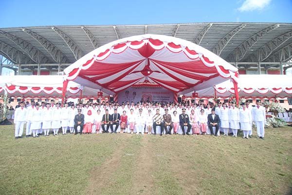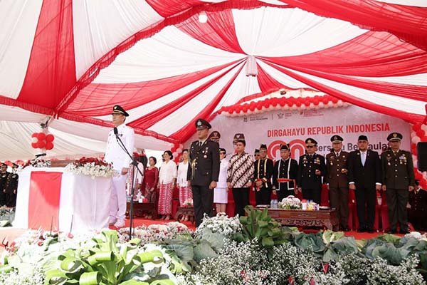 Upacara detik-detik Proklamasi berlangsung penuh semangat nasionalisme mengusung tema nasional “Bersatu Berdaulat, Rakyat Sejahtera, Indonesia Maju”, peringatan ini menjadi momentum refleksi bersama untuk terus memperkuat persatuan, menjaga kedaulatan, dan mendorong kesejahteraan rakyat menuju Indonesia yang maju.