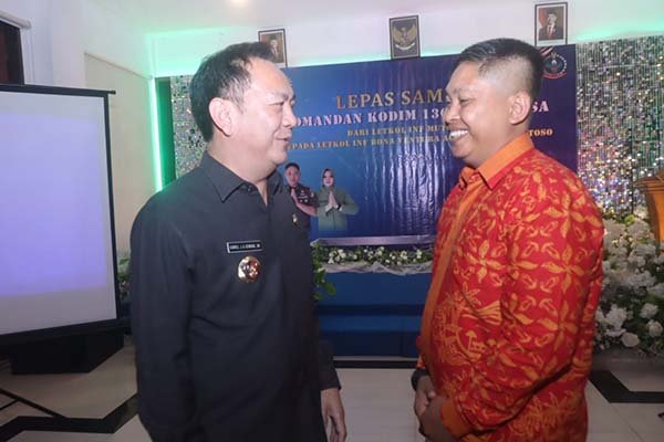 Walikota Tomohon sampaikan ucapan selamat bertugas di tempat yang baru Kepada Letkol. Inf. Mutakbir dan Selamat Datang Letkol. Inf. Bona Ventura Ageng Fajar Santoso Sebagai Dandim 1302/Minahasa.