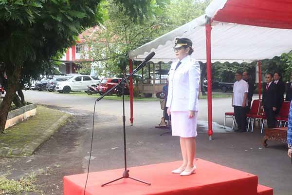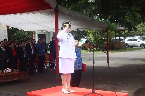 Wakil Wali Kota Tomohon Sendy Gladys Adolfina Rumajar, S.E., M.I.Kom. menjadi Inspektur Upacara Peringatan Hari Otonomi Daerah XXIX Tahun 2025 di Kota Tomohon.